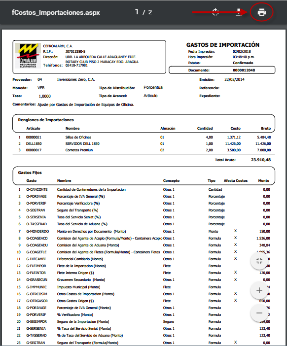 Para finalizar se nos desplegara una ventana en la cual podremos ver una vista previa del formato que seleccionamos previamente. Para imprimirlo solo deberemos presionar el boton con forma de impresora que se encuentra en la parte superior derecha como lo muestra la imagen, luego solo deberemos seleccionar la impresora con la cual deseamos imprimir la forma.