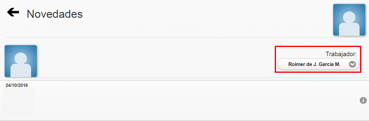 Para seleccionar el trabajador que deseas consultar sólo tienes que dar clic en el menú desplegable que se encuentra debajo de la etiqueta