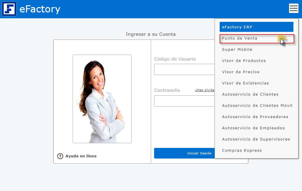 a. Antes de iniciar eFactory, nos ubicamos en la parte superior derecha y presionamos el botón