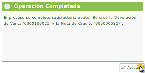 b. Después se muestra una ventana donde nos dice que la Operación fue Completada Exitosamente y presionaremos el botón de