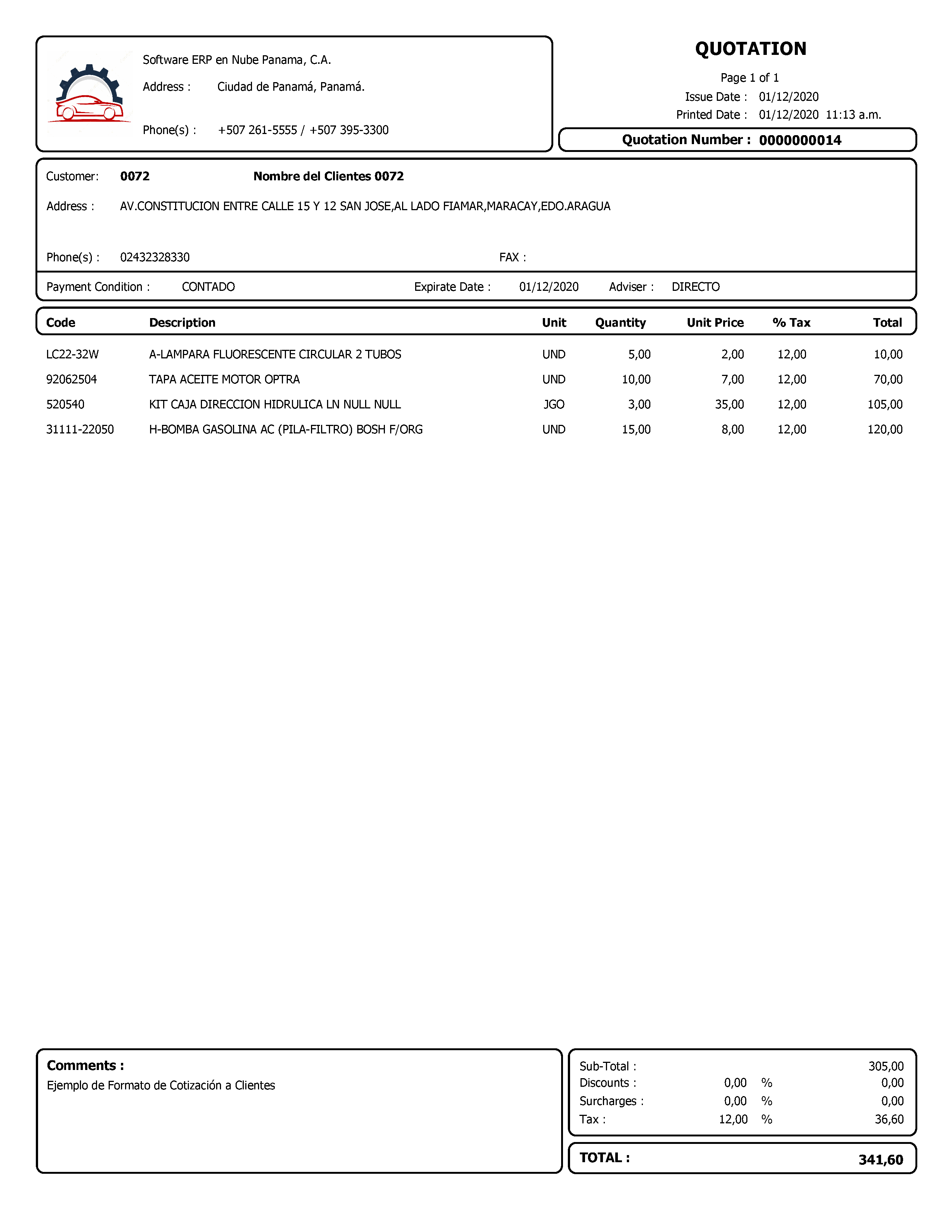 y se generará un documento PDF de la cotización que acabas de realizar.
