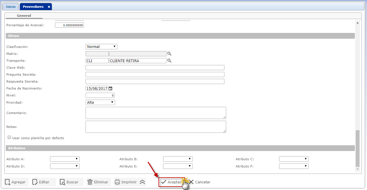 Luego de haber completado todos los datos de llendo de la agregación de un proveedor, procedemos a seleccionar el botón