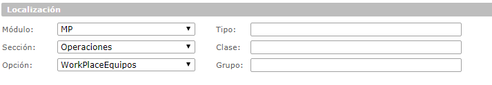 la lista desplegable que se usara en la inserción de datos.d. 3. Sección Localización: Destinada a determinar el lugar desde el cual, el usuario tendrá acceso a la variable, en este sentido también se definen los valores de clasificación (el usuario tendrá acceso a la variable desde los formularios que contengan la función Mediciones). En esta sección se configuraran los siguientes campos: