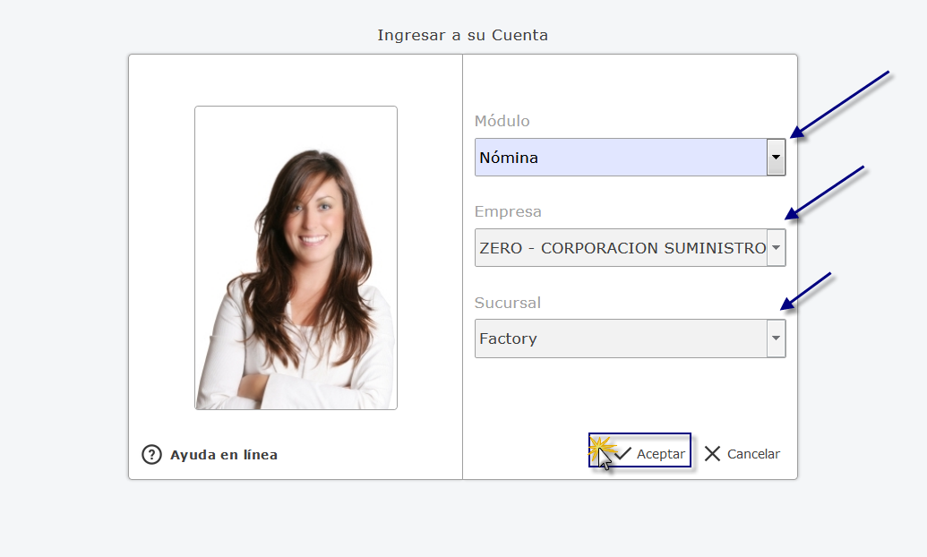 a. Al iniciar eFactory, Seleccionamos la Aplicación