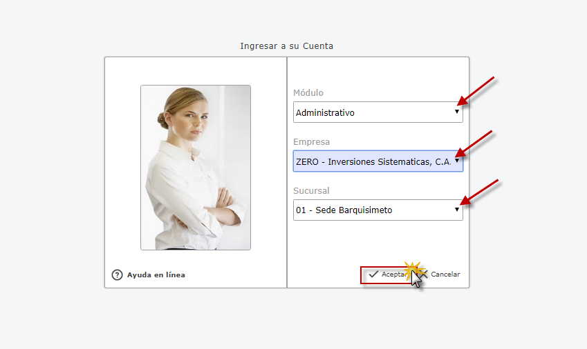 a. Al iniciar eFactory, Seleccionamos la Aplicación