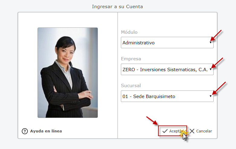 Administrativo, Empresa y Sucursal de la Empresa y presionamos el botón