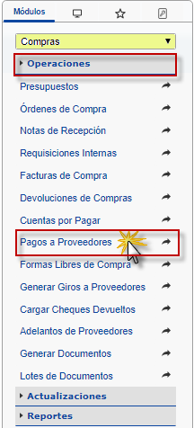 b. Ubicamos el módulo Compras y seleccionamos la opción Pagos a Proveedores